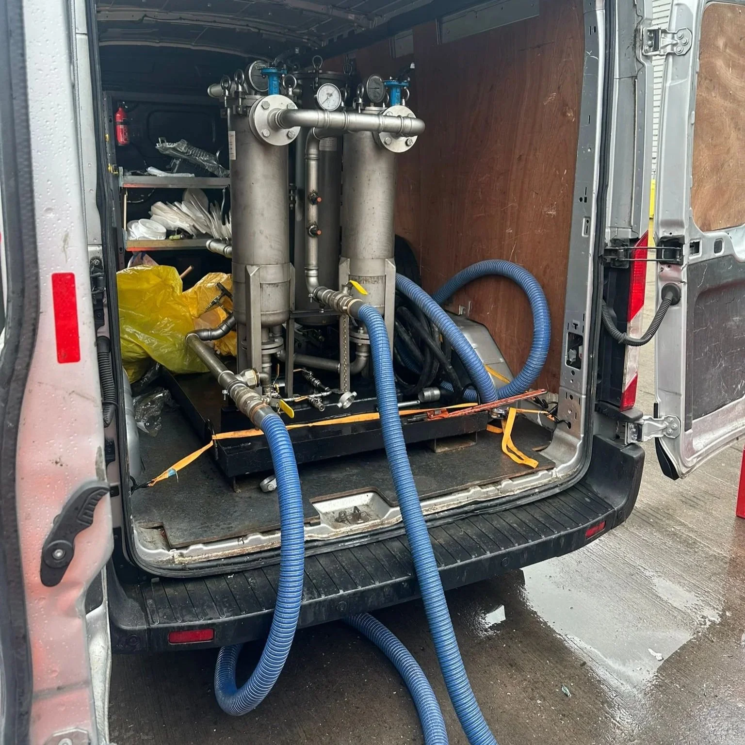 Mobile fuel polishing rig installed in an OTS service vehicle, allowing engineers to carry out filtration and fuel treatment directly on site.